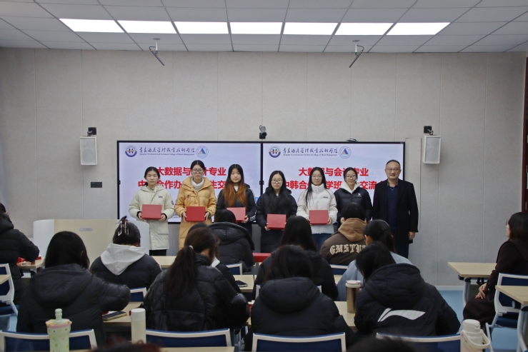 随着首届中韩合作班学生完成国内阶段学习、即将赴韩深造,会计学院特别举办“情系中韩・逐梦远航”学生交流会暨离校欢送会。会上,项目负责教师回顾了中韩合作办学项目的建设历程与成果,肯定了同学们在校期间的努力与成长,鼓励大家赴韩后继续深耕专业、勇于探索,以国际视野赋能个人发展。学院还为每一位学生精心准备了定制礼物,将期许与祝福融入其中,为同学们的校园时光画上圆满句号。
